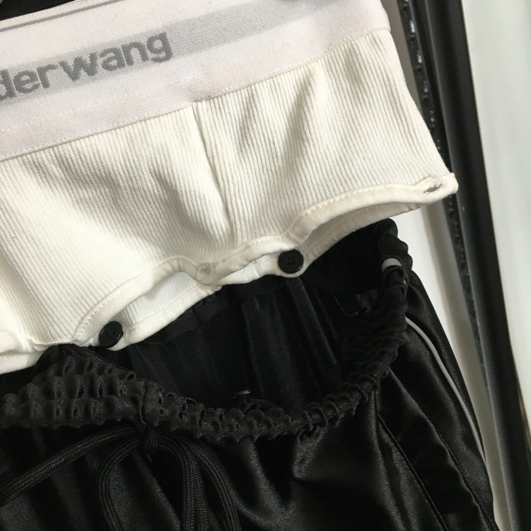 Alexander* Royal suit, drawstring (elastic) waist stand collar long sleeve zipper jacket + fake two-piece high waist wide leg trousers, black,