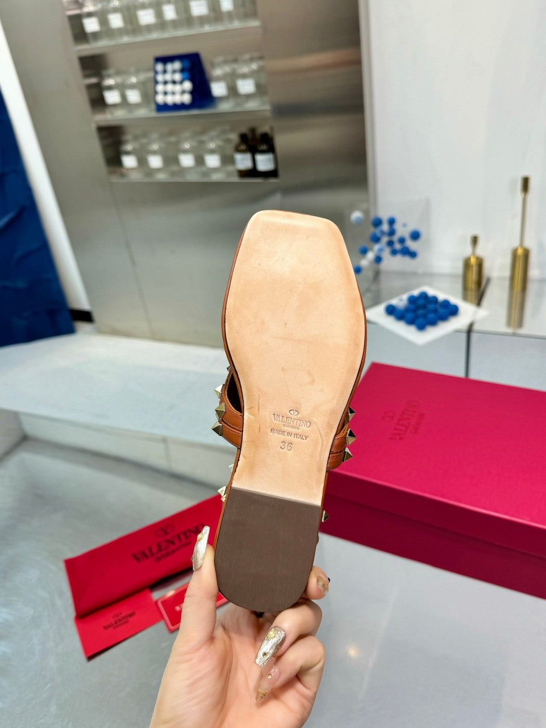 Valentino* 24 new flat sandals with rivets and hollowed-out back 1:1 VIP