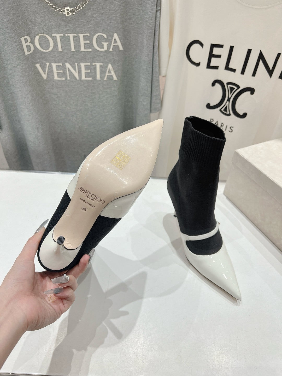 JIMMY CH** VIP1:1Early Autumn new simple pointed elastic high heel boots short boots