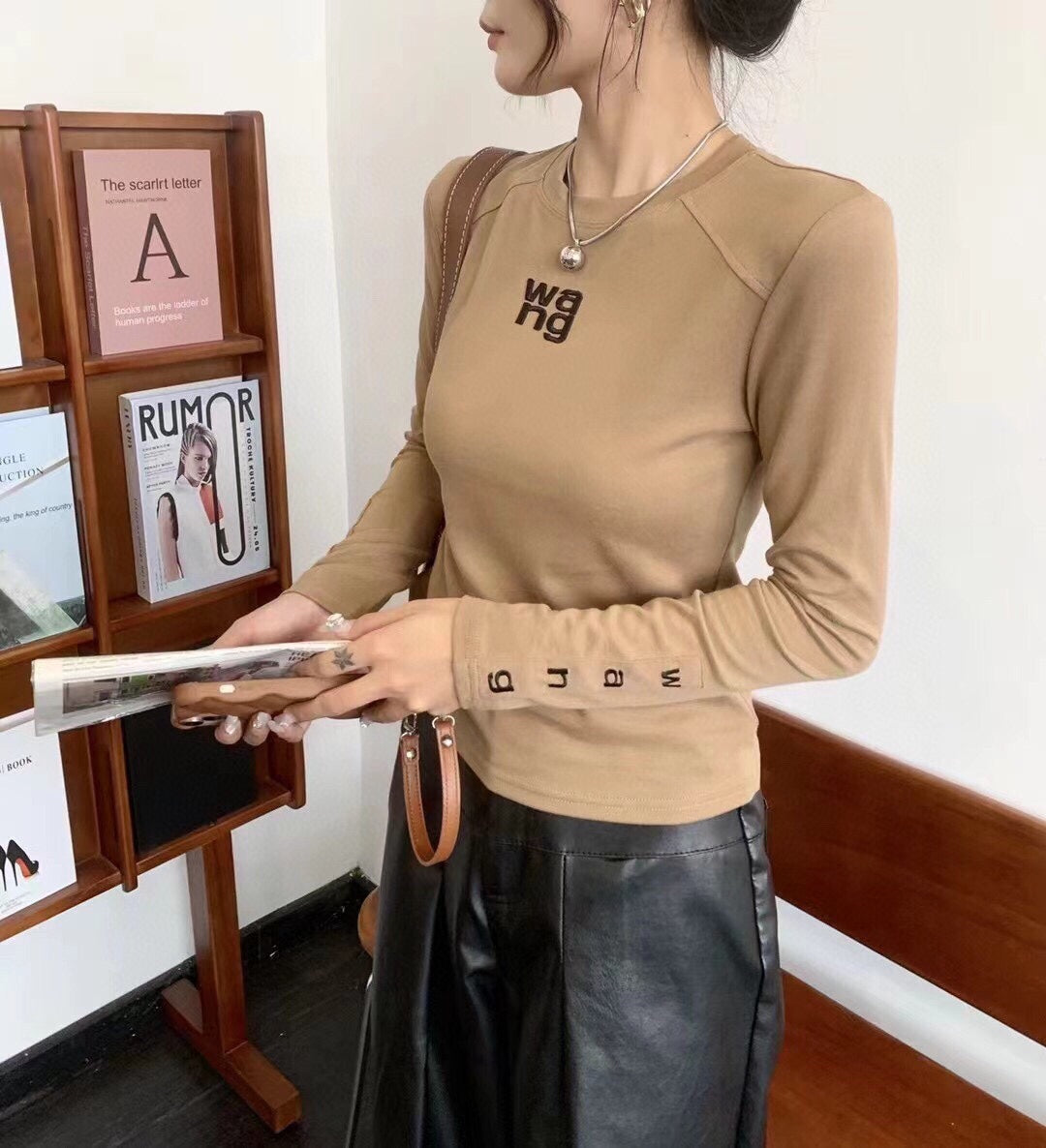 AW 24SS Embroidered Cotton Lettering Long Sleeve T-Shirt