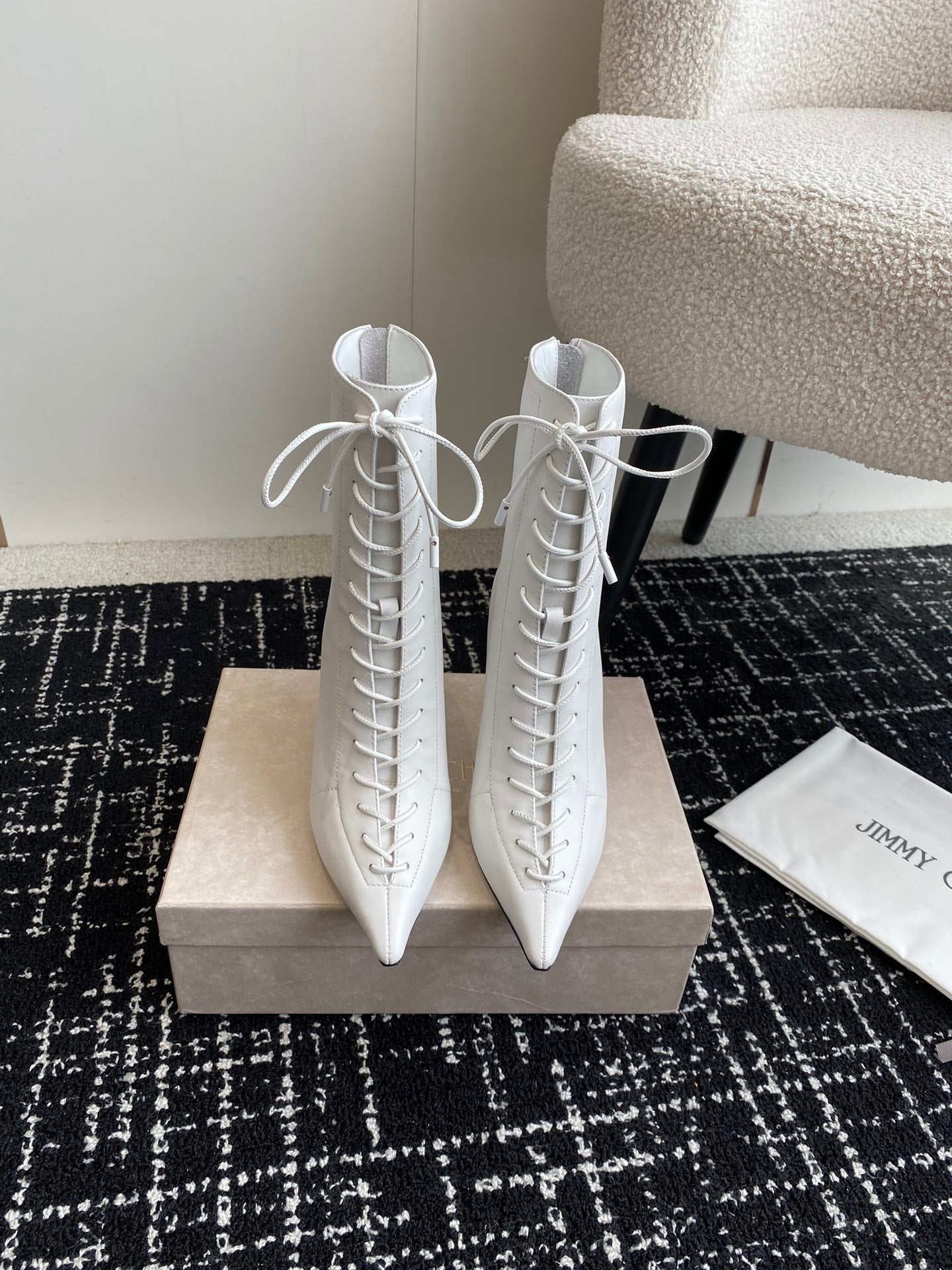 JIMMY CH**VIP1:1 Early Autumn new simple pointed calfskin high-heeled ankle boots