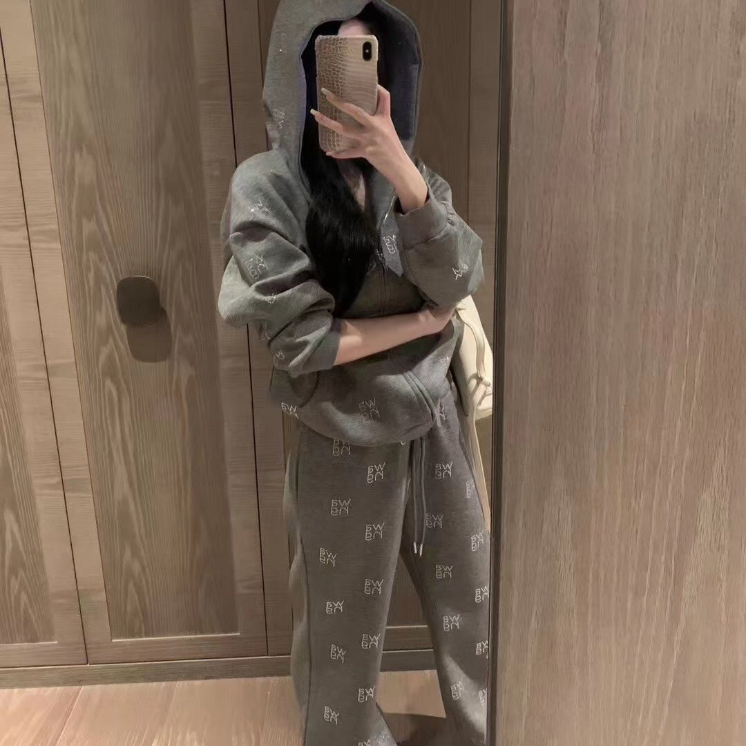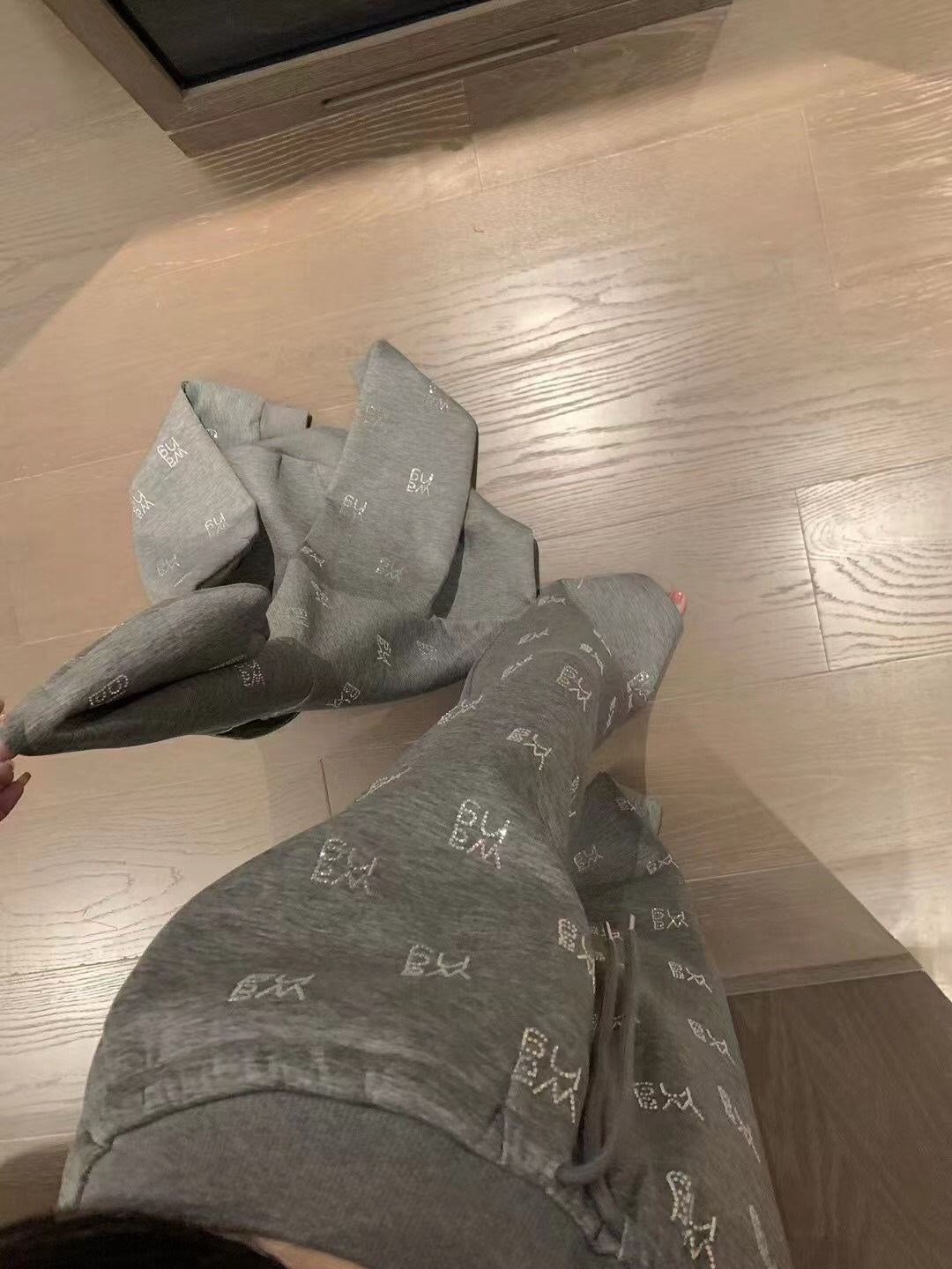 WA Full Body Hot Diamond Letters Hooded Zipper Jacket + High Waist Long